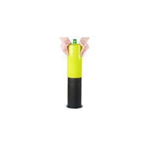 Dzięki specjalnemu krążkowi, który znajdziesz wewnątrz, możesz z łatwością dopasować zgniatarkę do różnych wielkości butelek. Butelki i puszki po zgnieceniu przybierają kształt krążka, który zajmuje znacznie mniej miejsca, nawet niż butelka zgnieciona nogą.